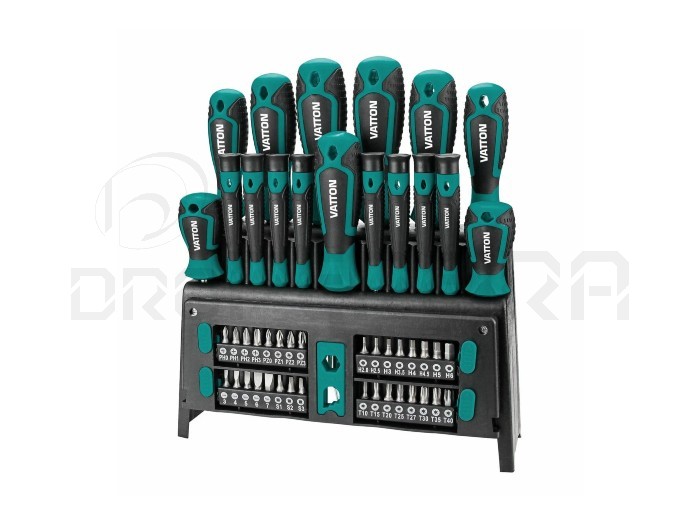 CONJUNTO CHAVES COM SUPORTE COM 50 CHAVES FENDA VATTON