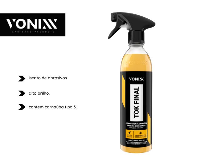 Tok Final foi desenvolvida com a mais pura cera de carnaúba cearense e polímeros de última geração, que protegem e realçam o brilho de pinturas automoveis.